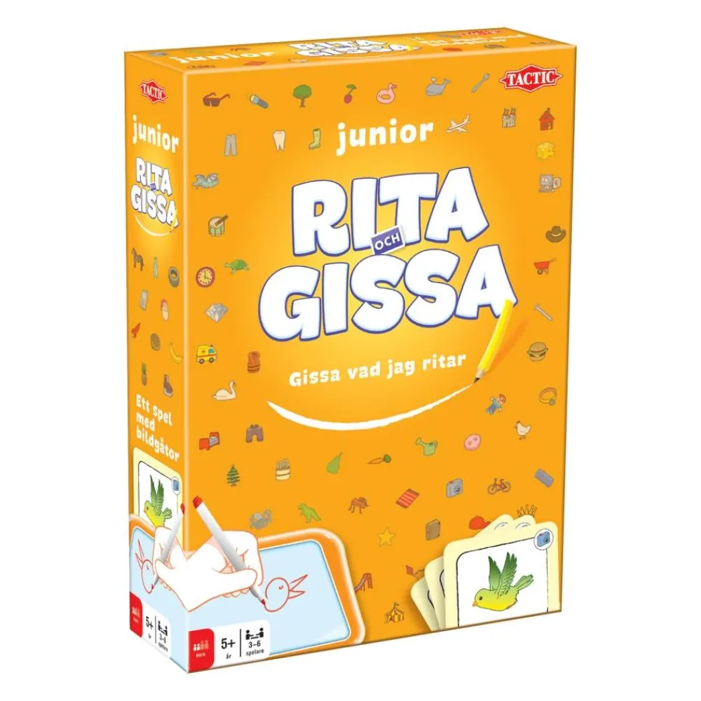 Det Populara Rita & Gissa-Spelet Nu I Juniorversion Med 600 Ord Att Rita Och Gissa.Pa Varje Kort Finns Ett Illustrerat Ord For Yngre Barn Och Tre Skrivna Ord For De Lite Aldre I Kategorierna: Saker, Djur & Natur Samt Personer & Figurer. Turas Om Att Rita Ledtradar Medan De Andra Spelarna Gissar Vad Som Ritas. Barn Som Annu Inte Lart Sig Lasa Ritar Bara De Illustrerade Orden. Om Nagon Gissar Ratt Far Bade Den Som Ritar Och Den Som Gissar Ratt Flytta Framat Pa Spelplanen. Den Som Forst Kommer I Mal Har Vunnit.