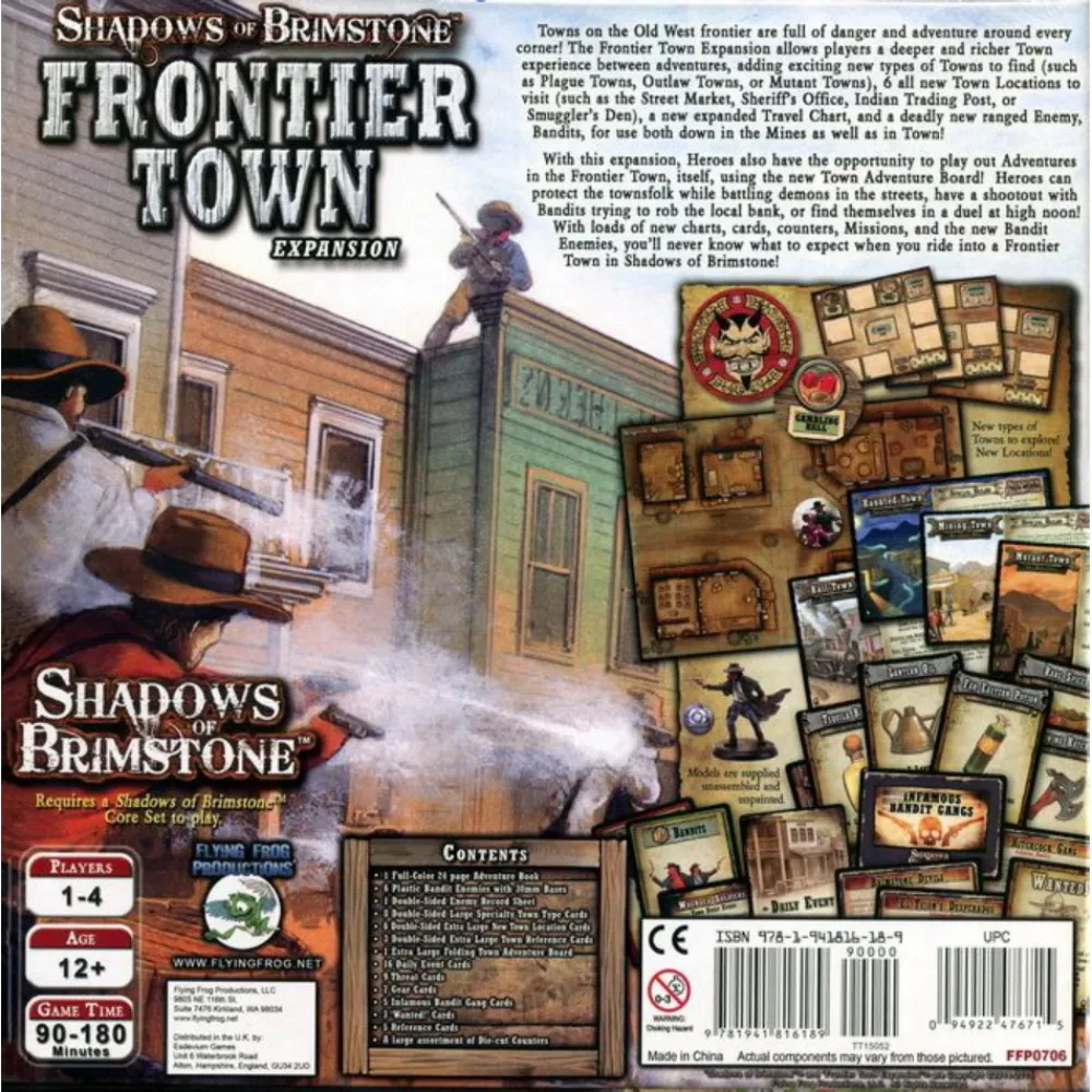 Stader I Den Gamla Vasterns Gransomraden Ar Fulla Av Faror Och Aventyr Runt Varje Horn!Shadows Of Brimstone: Frontier Town-Expansionen Ger Spelare En Djupare Och Rikare Stadsupplevelse Mellan Aventyr, Lagga Till Spannande Nya Typer Av Stader Att Hitta (Som Plague Towns, Outlaw Towns Eller Mutant Towns), Sex Nya Town Locations Att Besoka (Som T.Ex. Street Market, Sheriff’S Office, Indian Trading Post Eller Smuggler’S Den), En Ny Utokad Resekarta Och En Dodlig Ny Fiende – Banditer – For Anvandning Bade Nere I Gruvorna Och I Staden!