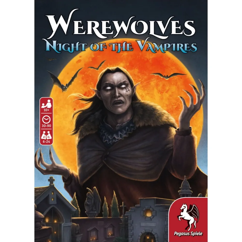 Varhelst Varulvar Harjar, Ar Vampyrerna Inte Langt BortaSa Ar Ocksa Fallet Med Uppfoljaren Till Kommunikationsspelet Werewolves – Night Of The Vampires, Dar Blodsugarna Ar Losa. Den Beprovade Spelprincipen Forblir Densamma: Varje Natt Slukar Vampyrerna I Hemlighet En Manniska. Foljande Dag Diskuterar Alla Spelare Vem Av Dem Som Kan Vara En Vampyr – Och Kan Lyncha Den Mest Misstankta Personen Efter Att Ha Rostat. Specialkaraktarer Som Somnlosheten Och Utredaren Kan Avsloja Vampyrerna, Men Kommer Folk Att Tro Dem Nasta Dag?