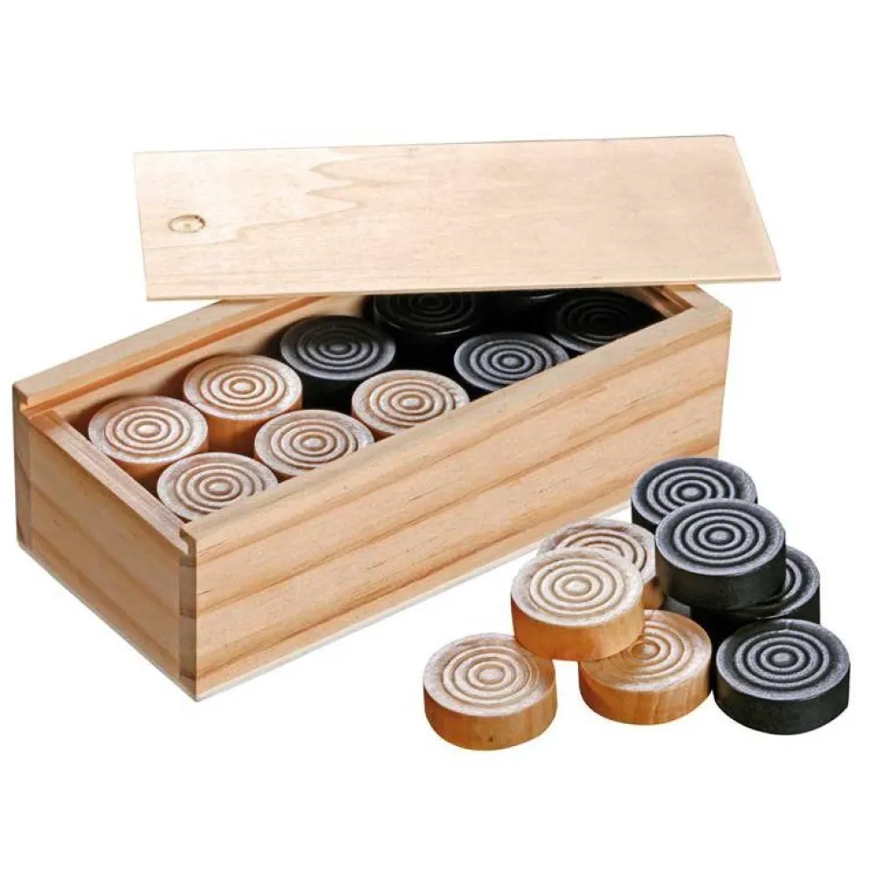 Extrapjaser Till Checkers, Dam, KvarnspelTrapjaser Tillverkade I Bjork. 20 Ljusa, 20 Morkbetsade.
