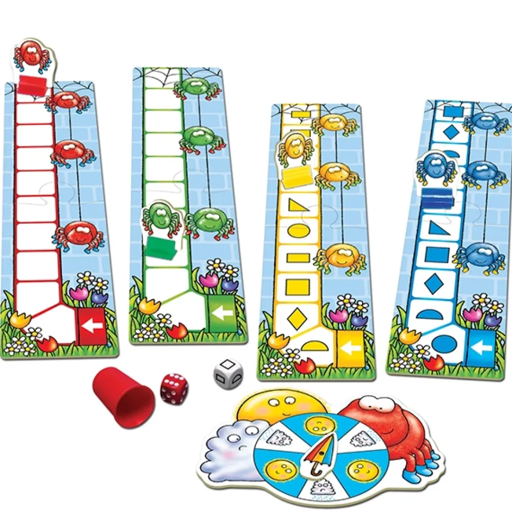 Trana Pa Att Rakna Eller Pa Olika Geometriska Former I Detta Roliga Spel Som Bygger Pa Den Valkanda Barnsangen.Det Galler For Din Spindel Att Ta Sig Upp Till Natet Sa Fort Som Mojligt Innan Regnet Kommer Och Spindel Spolas Bort. Anvand Den Vanliga Tarningen Dar Du Raknar Och Flyttar. Du Kan Ocksa Vanda Pa Spelplanen Och Anvanda Tarningen Med Bilder Pa Olika Former.