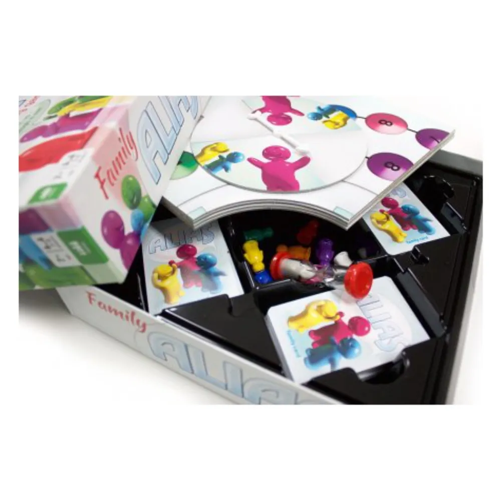 Alias Som Roar Hela Familjen!Antligen Kommer Det Populara Alias-Spelet I En Familjeversion! Forklara Ord Med Andra Ord Dar Barn Och Vuxna Forklarar Och Gissar Ord Tillsammans. De Anpassade Familjekorten Och De Svarare Vuxenkorten Garanterar Lika Vinstmojligheter. Snurran Pa Spelplanen Talar Om Vem Som Ska Gissa.