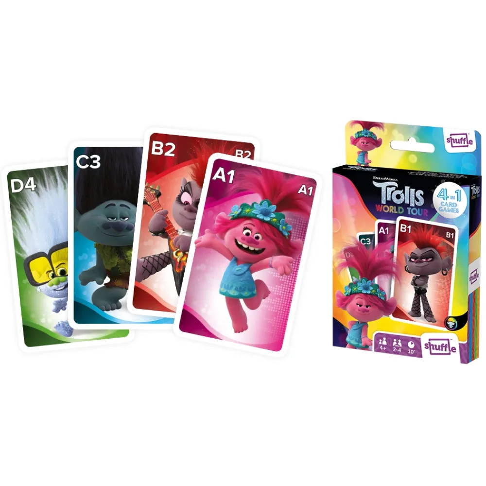 Cartamundi (övrigt) Shuffle – Kortspel Trolls World Tour 4 I 1| Kortspel