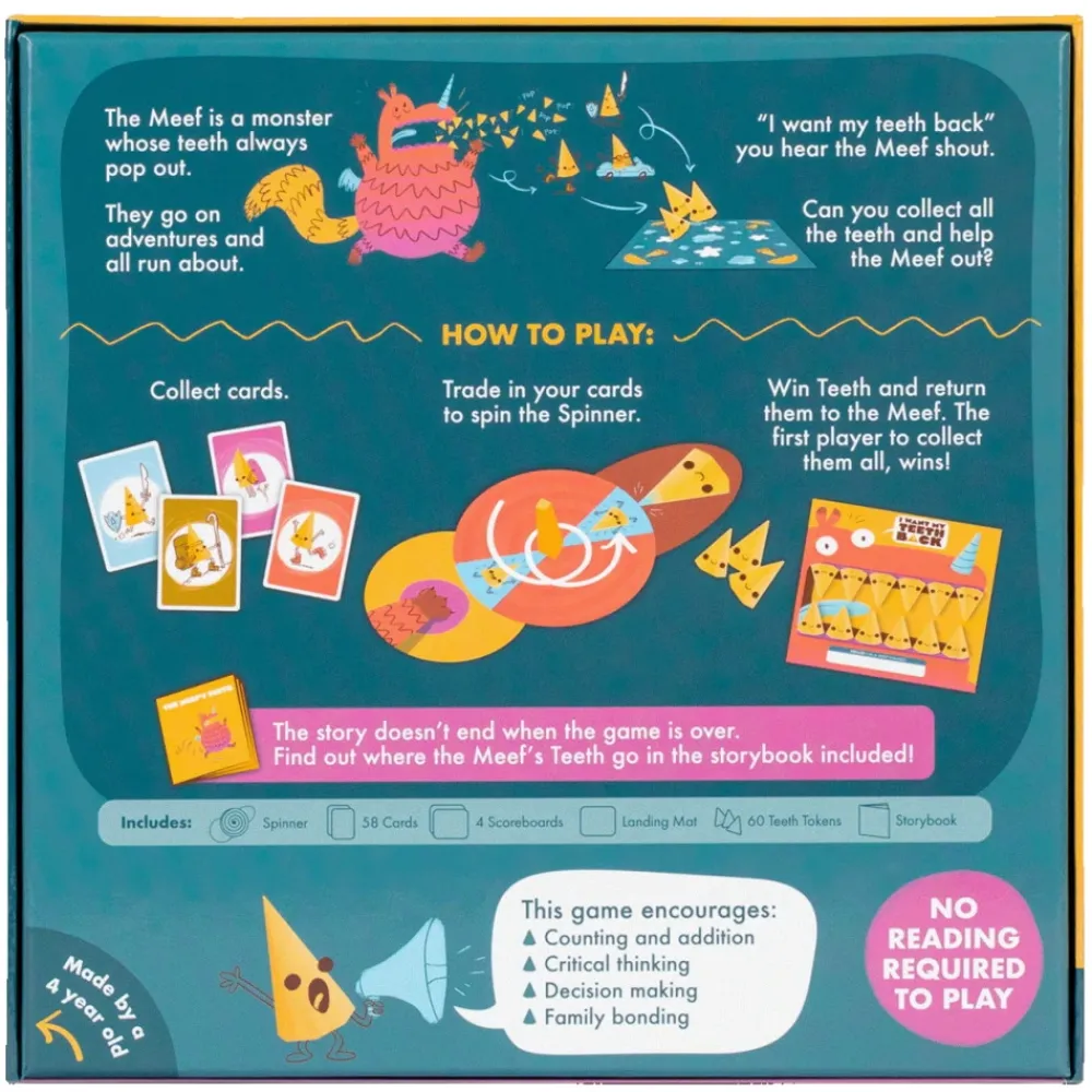 Meef Monstret Har Tappat Sina Tander Och Behover Din Hjalp!Ett Kortsamlingsspel Med En Spinner, Ett Monster I Trubbel Och Nagra Aventyrliga Tander. (Dar Du I Hemlighet… Lar Dig Lite Matte)