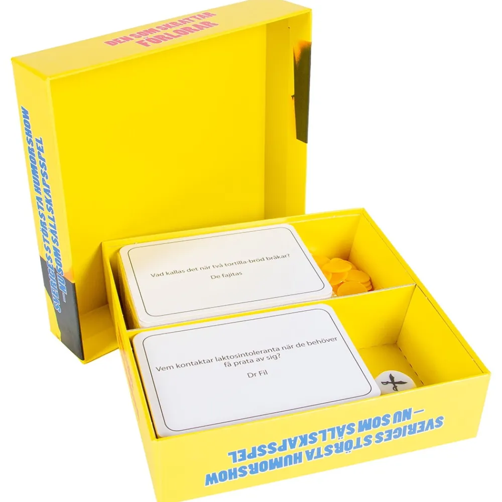 Sveriges Storsta Humorshow – Nu Som Sällskapsspel!Det Basta Fran Programmet Och Massvis Med Nya Ordvitsar Vi Pa Har Tillsammans Med Det Prisbelonta Ganget Fran ”Den Som Skrattar Forlorar” Tagit Fram Ett Nytt Sällskapsspel For Alla Som Inte Kan Fa Nog Av Usla Vitsar. Vi Garanterar Skrattfest – Men Pa Med Sakerhetsbaltet, For Det Kan Bli En Hel Del Grova Skamt.