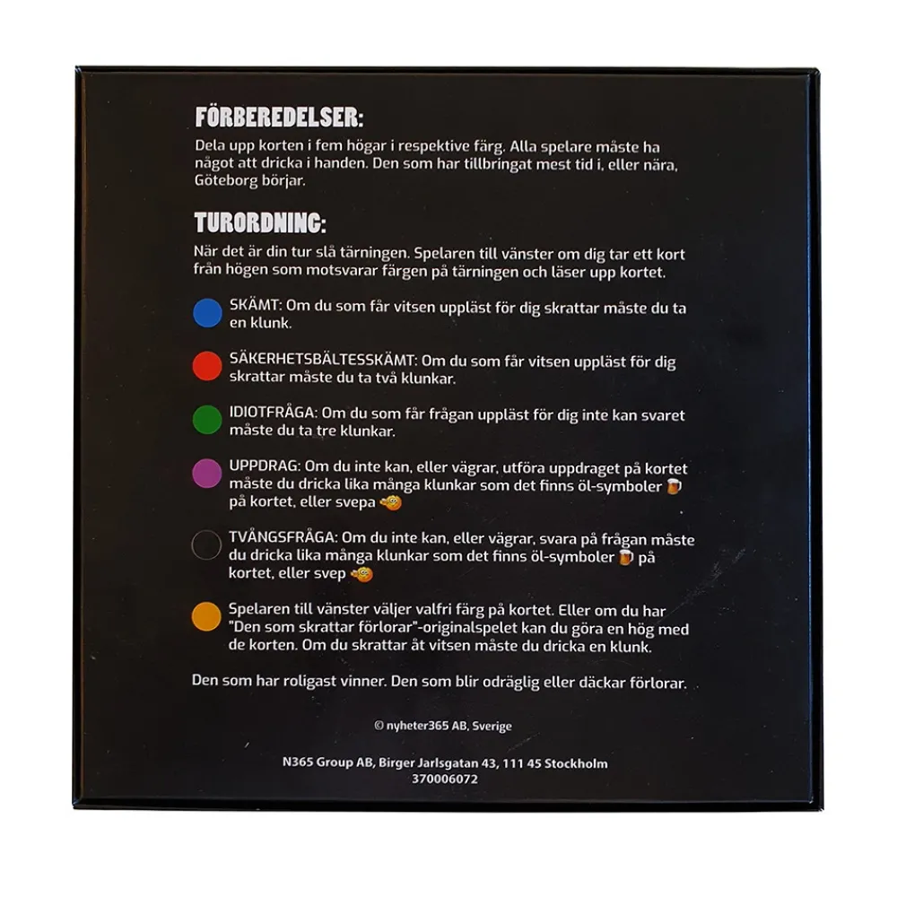 Sla Tarningen Och Dra Ett Kort. Kortet Ger Dig En Utmaning Eller Fraga. Du Vill Verkligen Inte Utfora Dessa Utmaningar, Och Du Vill Verkligen Inte Svara Pa Dessa Pinsamma Fragor. Vilken Tur Att Du Kan Dricka For Att Slippa Svara! Men… Desto Pinsammare Kort, Desto Fler Klunkar…