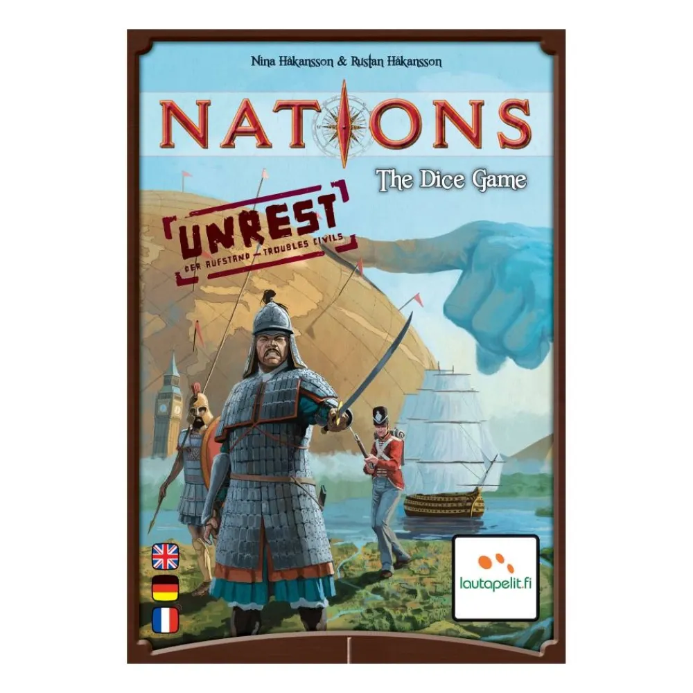 Unrest, Den Forsta Stora Expansionen Till Nations: The Dice Game, Inkluderar Atta Nya Nationer. Fyra Ytterligare Nya Koncept Inkluderas: Gron Tarning – Unrest (Vilket Innebar Lite Mer Utmaning Nar Tarningen Rullas) Star Rerolls (Dessa Svarar Mot Tarningar Som Visar Unrest-Ikoner), Bonusbrickor (Nagot Nytt Att Sikta Mot Varje Runda) Och Pass First Tiles (Fa Mer Fordelar). Tillsammans Med 36 Nya Progress Cards Okar Aterspelningsvardet Drastiskt. Denna Expansion Rekommenderas For Den Som Ar Valbekant Med Grundspelet.