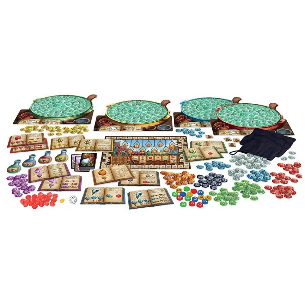 Varje Spelare Har Sin Egen Pase Med Ingredienschips. Under Varje Omgang Drar De Samtidigt Marker Fran Sina Pasar Och Lagger Till Dem I Sina Grytor. Ju Hogre Varde Pa Det Dragna Chipet, Desto Langre Placeras Det I Grytans Virvlande Monster, Vilket Okar Hur Mycket Bryggden Kommer Att Vara Vard. Utmana Lyckan Sa Langt Du Kan, Men Om Du Lagger Till For Manga Bolmorter Exploderar Din Gryta!