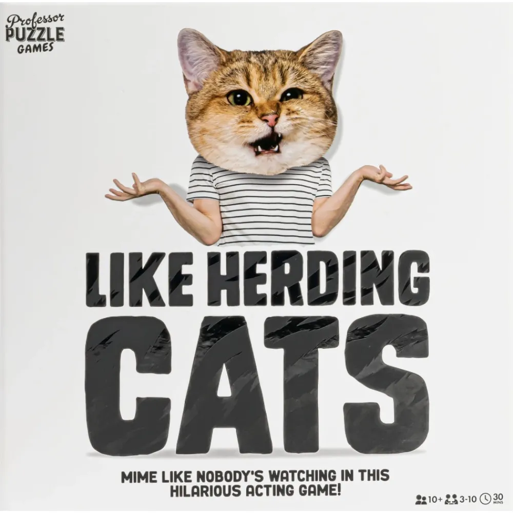 Det Har Spelet Ar Det Purrrfekta Svaret Pa Charader!Varje Omgang Tar Katterna Pa Sig En Kattmask Som Ogonbindel Och Spelar Ut En Av Tva Ledtradar. Men Se Upp For En Katt-Astrof, For Nar De Utspelas Kan De Verka Ganska Lika! Herdarna Grupperar Sedan Katterna Och Gissar Vad De Agerade. Arbeta Tillsammans For Att Vinna Sa Manga Kort Ni Kan I 5 Omgangar. Unika Och Grammatiska Kattmask-Ogonbindlar Betyder Att Nervosa Skadespelare Kan Slappa Los Sin Inre Di-Katt-Rio Och Mima Som Om Ingen Tittar!