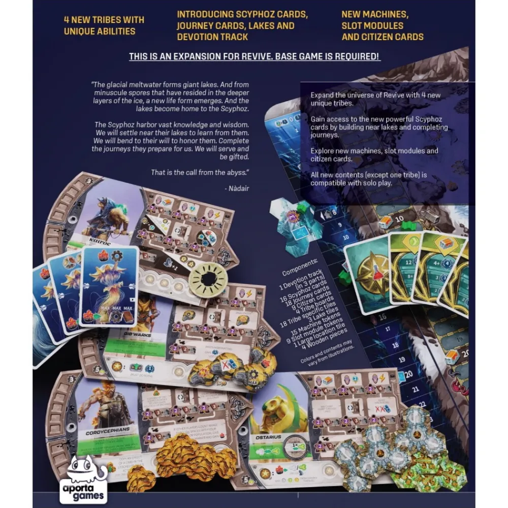 Forutom 16 Scyphoz-Kort, 18 Resekort, 3 Sjoar Och Devotion Track, Innehaller Denna Expansion 15 Nya Maskinmarkorer, 9 Slotmoduler, 9 Nya Medborgarkort Och Fyra Nya Stammar, Dar Allt Innehall (Forutom Cordycephians Stam) Ar Kompatibel Med Solospel. De Fyra Nya Stambradena Har Bara En Avancerad Sida, Och Var Och En Har Sina Egna Unika Regler, Avancerade Formagor Och Teknologier: